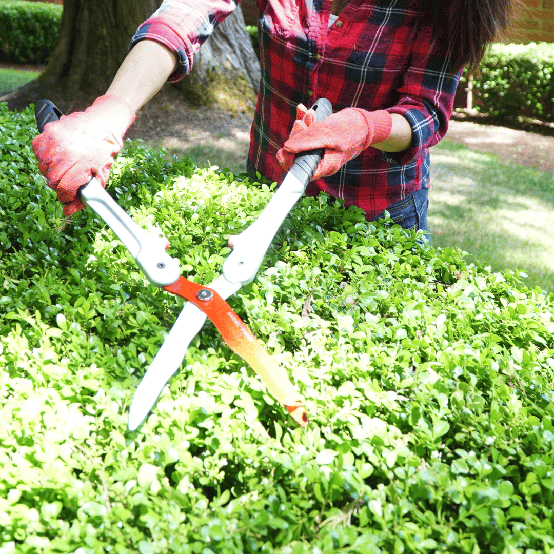 Corta arbustos de cuchillas forjadas de 4 mm de espesor y su robusto diseño con mango en ángulo. Con él, incluso los arbustos más compactos pueden volver a su forma sin esfuerzo. Un elaborado sistema de amortiguación minimiza la tensión en las articulaciones durante el corte. Además de una ranura de zumo forjada, la hoja también tiene estrías en el extremo de la hoja para sujetar incluso ramas más pequeñas en las tijeras.