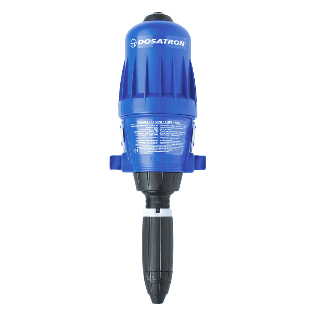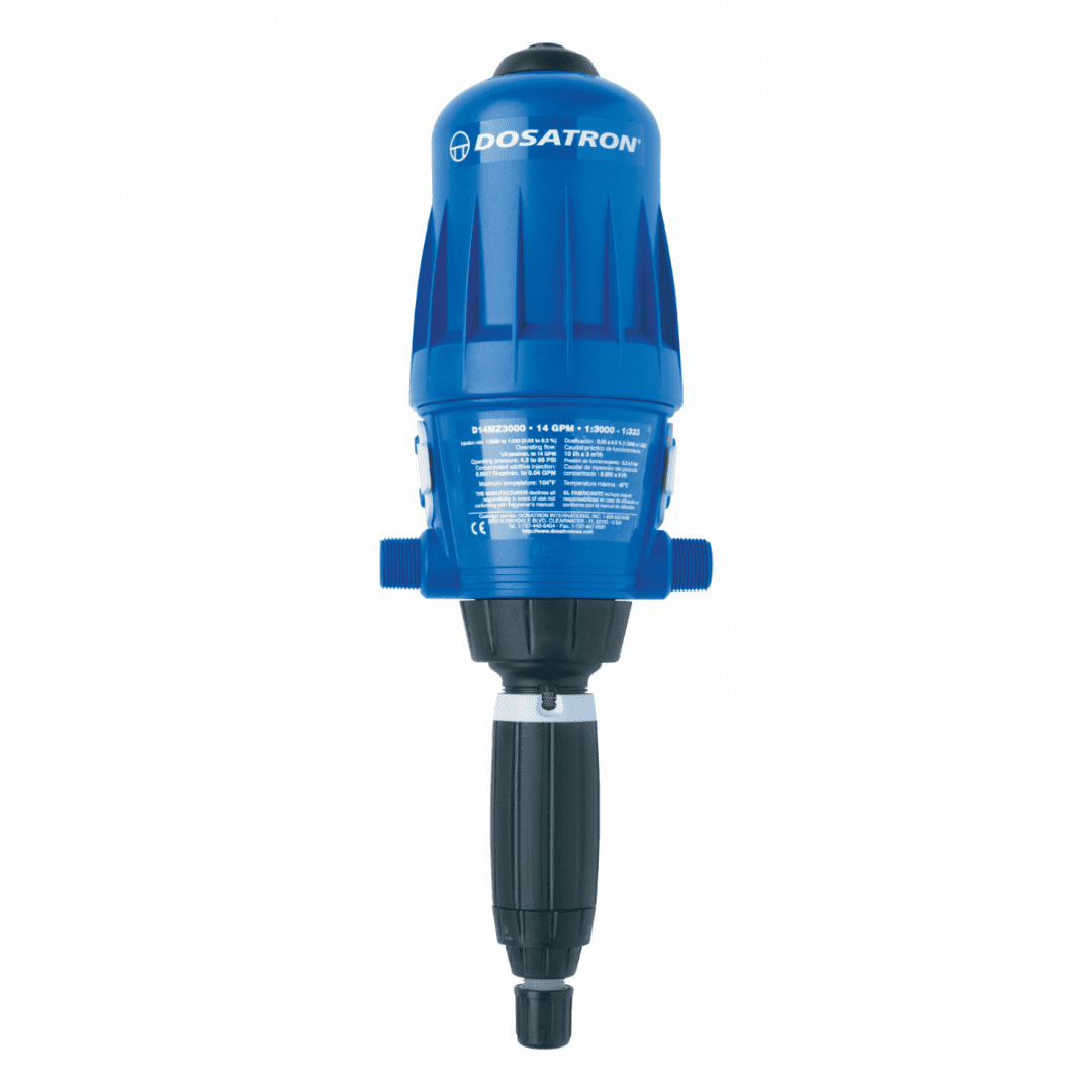 El Dosatron D14MZ3000 con un rango de dilución de 1:3000 a 1:333. Se utiliza en industrias que van desde el riego hasta la seguridad alimentaria y el saneamiento. También se puede instalar fácilmente con el kit de fontanería industrial (IPK34-14GPM) y es fácil de mantener.