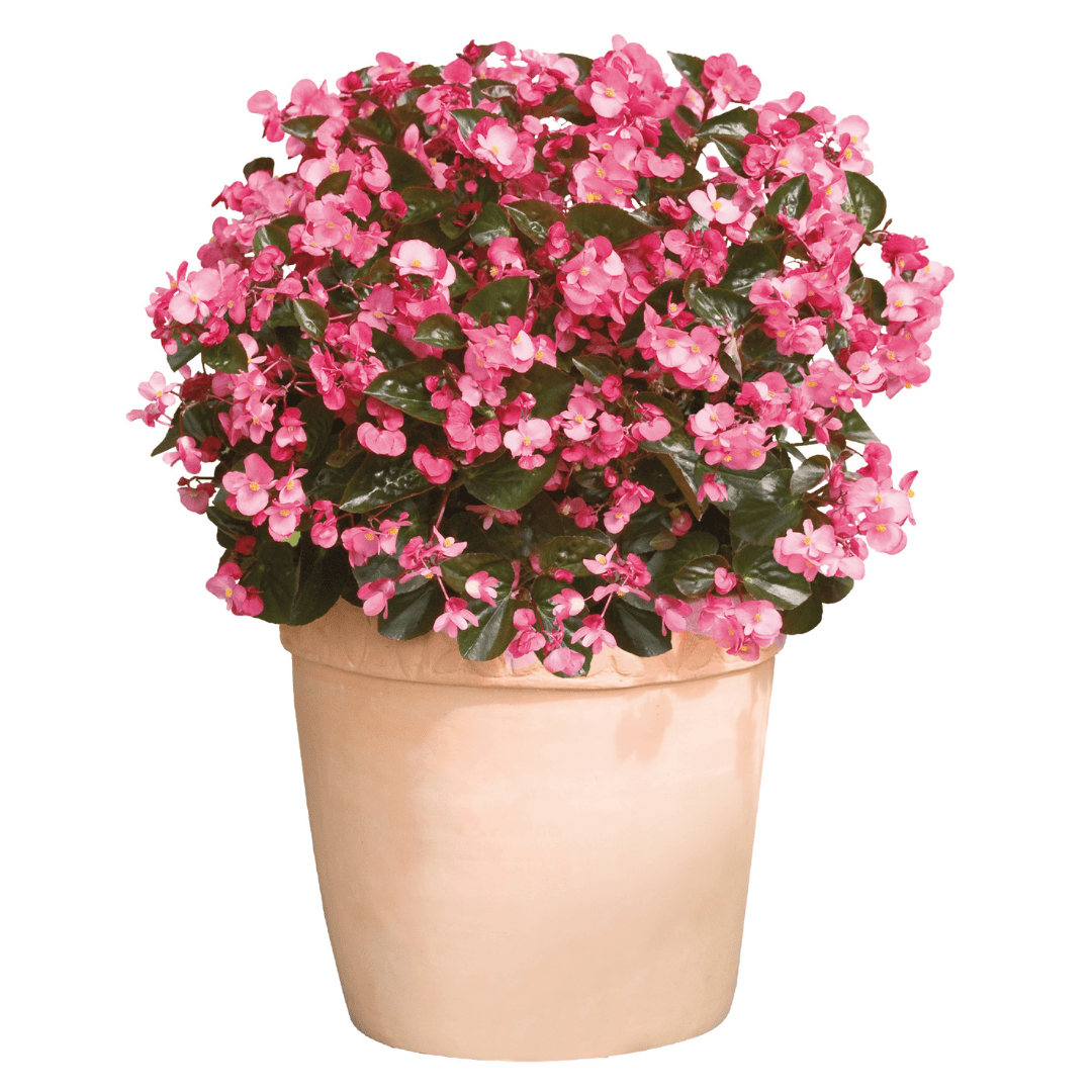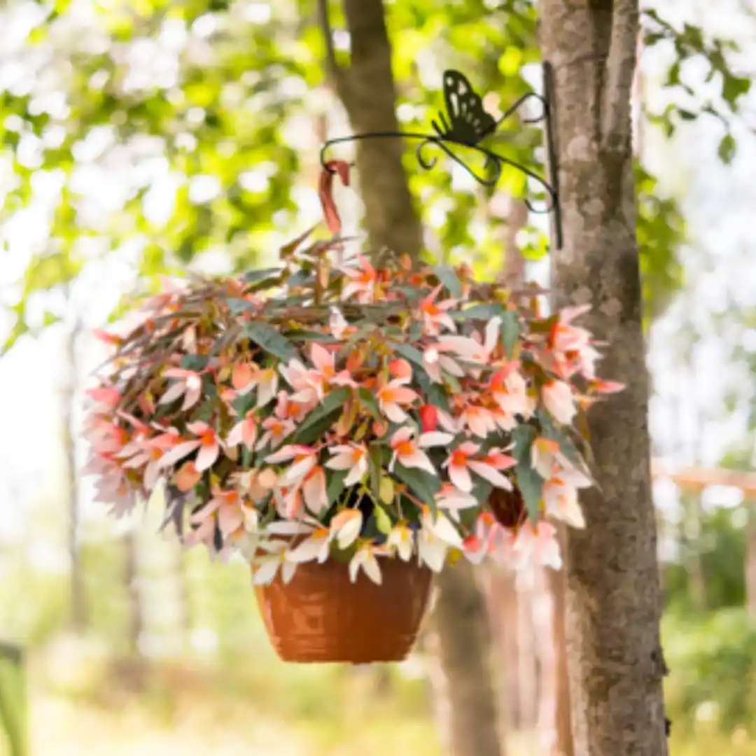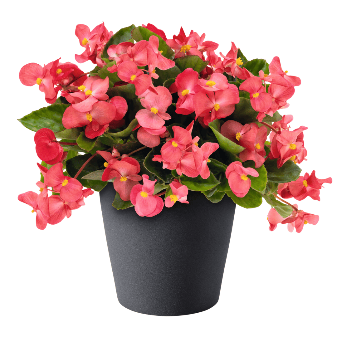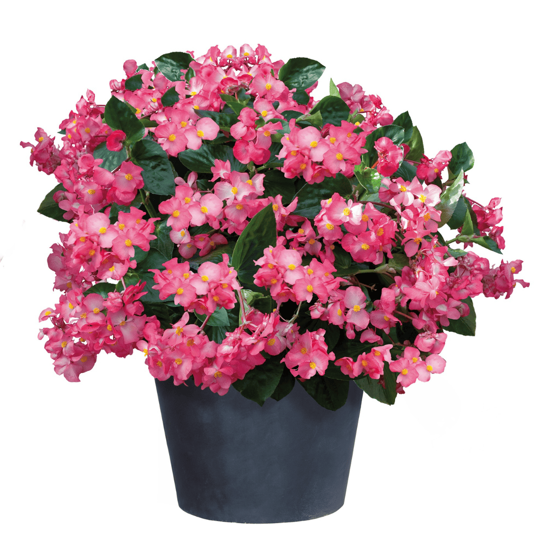 Primera begonia multiflora interespecífica. Ramificación extraordinaria. Hojas de bronce llamativas. Planta de hábito redondo, ideal para crear un efecto de “seto” denso y vigoroso en el paisaje.