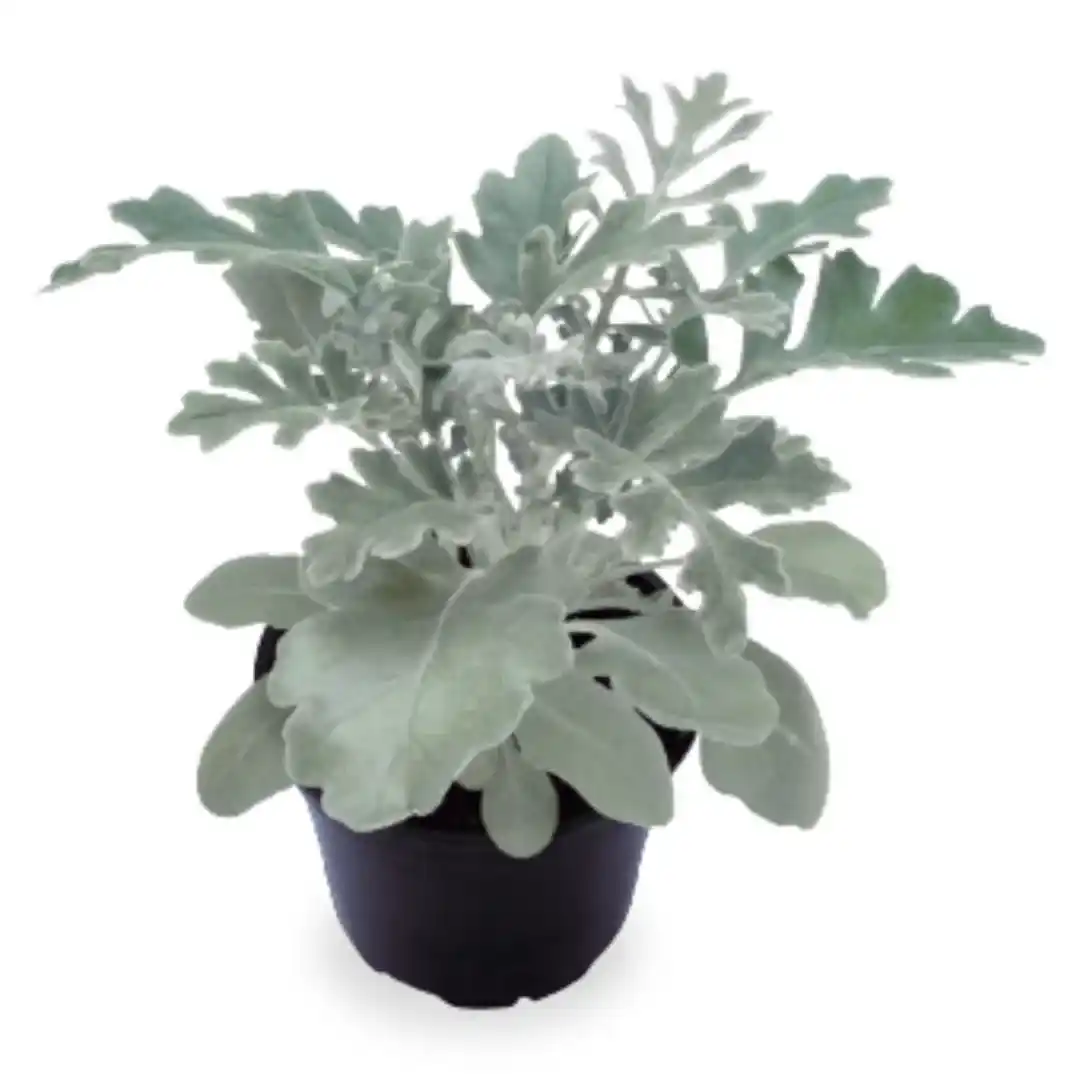 Hojas delicadas de color blanco plateado con pelos lanudos. Adición decorativa en arreglos florales. Atractivo árbol de hoja perenne para plantación en grupo.