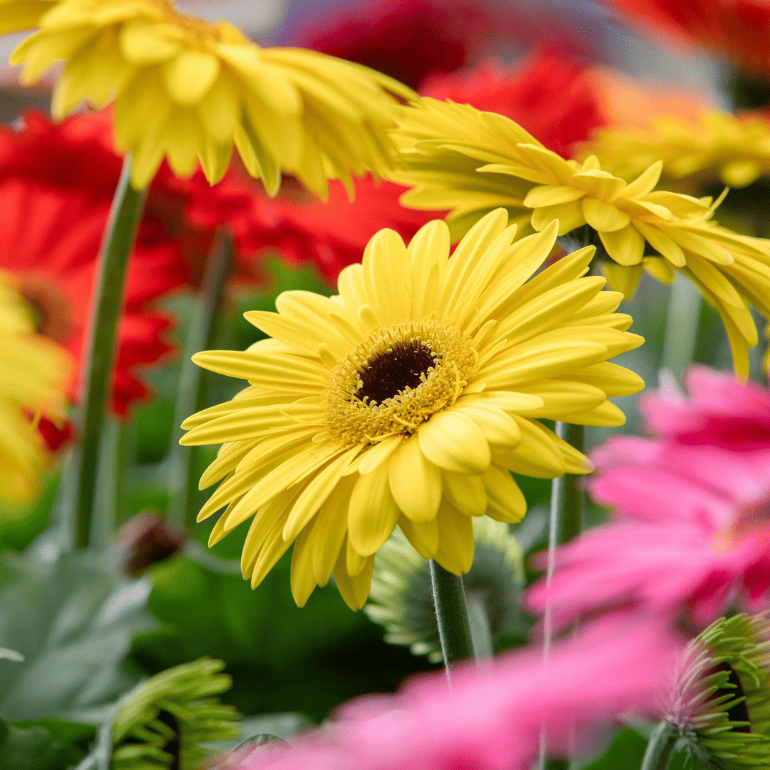 ¡La primera Gerbera jamesonii en maceta genéticamente uniforme del mercado! Produce 3 flores a la primera. Tiene una muy buena vida útil y, si se cultiva en las condiciones adecuadas, puede producir más de 10 flores.