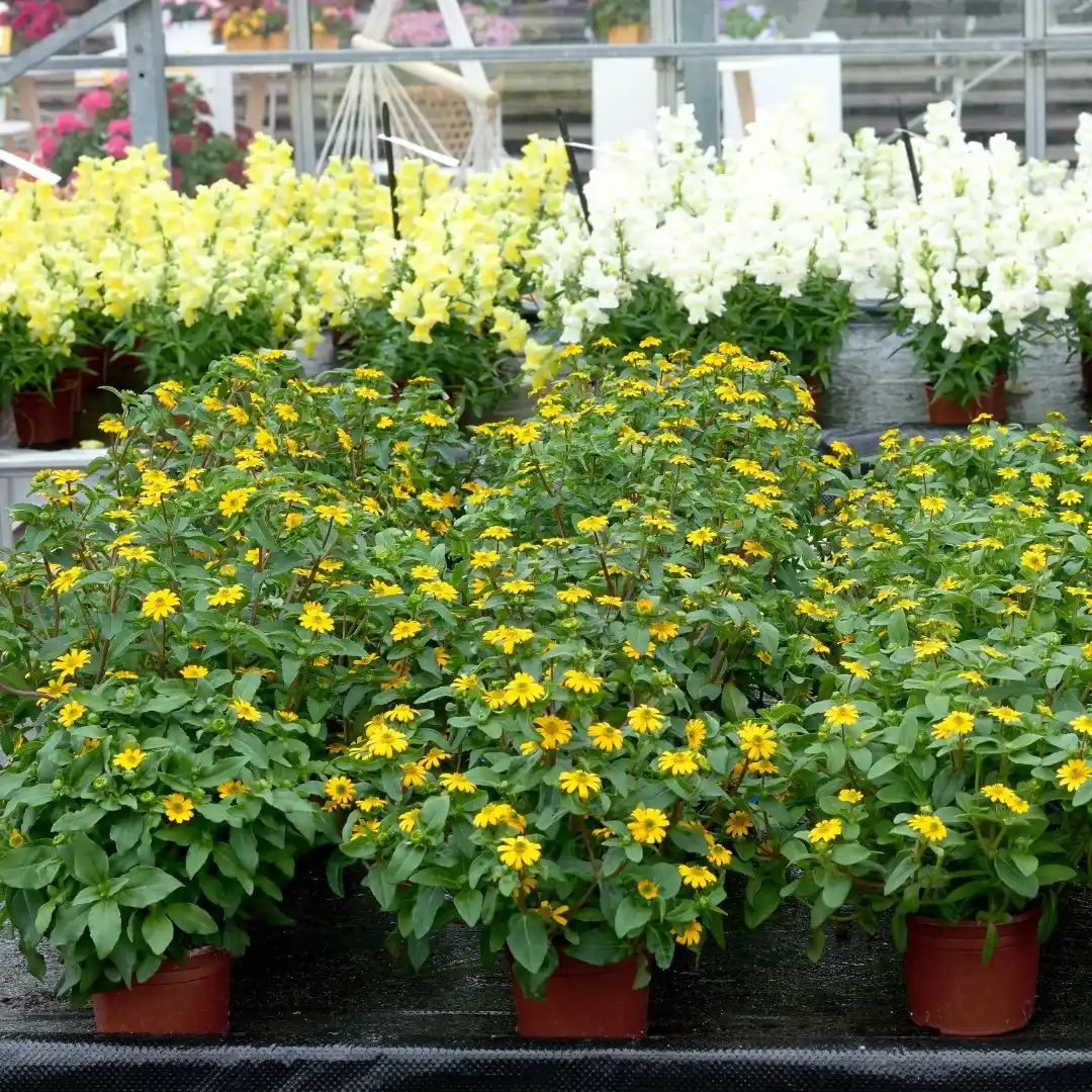 Follaje oscuro cubierto con multitud de flores amarillas brillantes. Adecuada para la producción en maceta. Rendimiento exterior superior gracias a flores muy fuertes. Crecimiento compacto y fuerte ramificación. 20-25 cm de altura. Flores color amarillo.